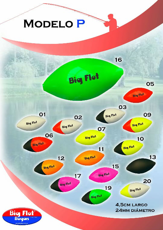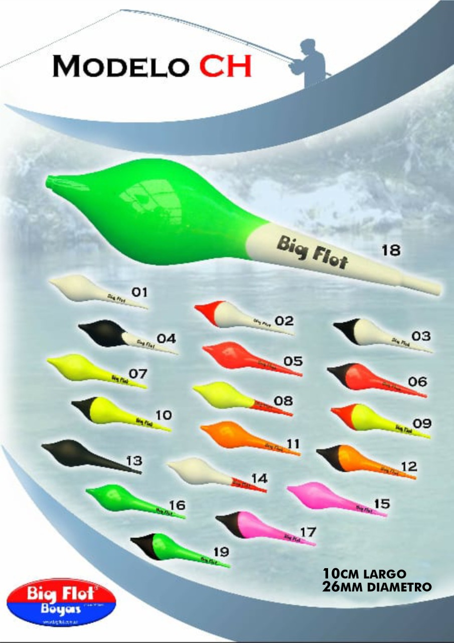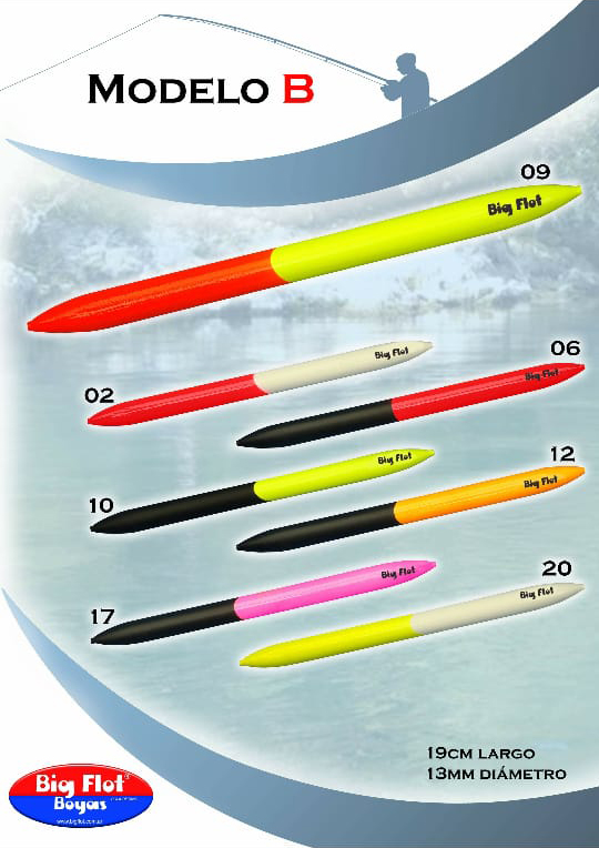 La empresa Big Flot fue creada en el año 2010 orientada a la fabricación de Boyas para la pesca deportiva. Para su elaboración utilizamos inyectoras de tecnología Japonesa y Poliuretanos de alta calidad. El spaguetty está compuesto con un polímero ultra flexible y con memoria de posición. Estos materiales nos permiten lograr un producto con muy bajo peso específico y una rigidez excepcional. Los colores logrados son por una excelente combinación de fondos, selladores, pigmentos, protectores UV y las distintas lacas utilizadas en su acabado. El sector de logística a través de empresas de distribución y/o representantes de ventas, que recorren distintos puntos del país se encargan de llegar a todas las localidades donde sean requeridos nuestros productos.